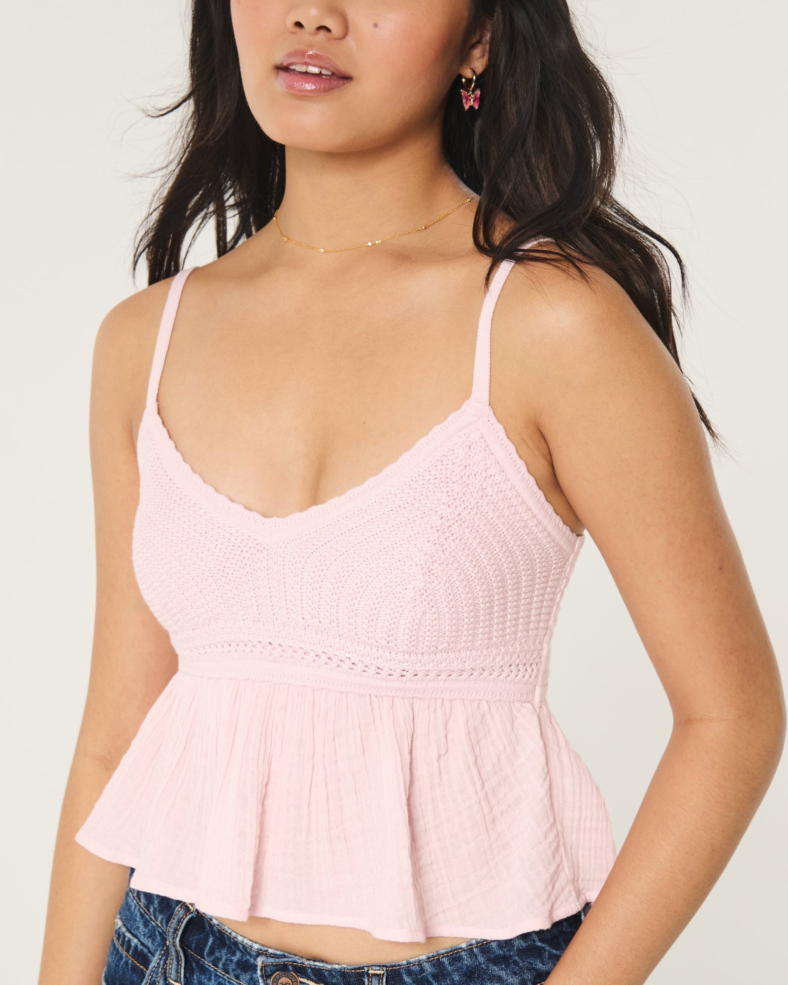 Indulge in unparalleled comfort and charm with this delightful top. Showcasing a delicate crochet-like pattern across the bust, it transitions seamlessly into a graceful, sheer hem. Featuring adjustable straps and a flattering V-neckline, this easy-to-wear piece is perfect for any occasion.